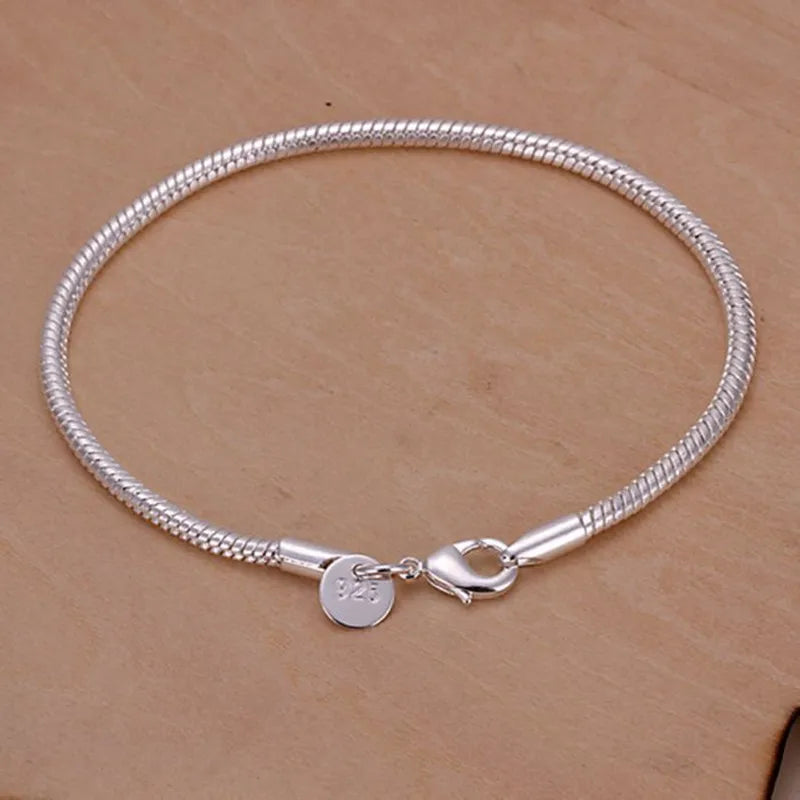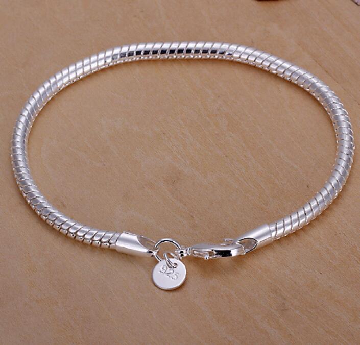 925 fashion silver plated jewelry 3mm Snake Bone Bracelet