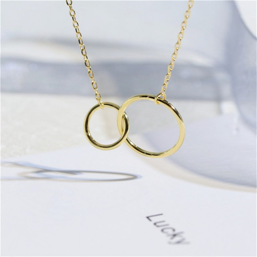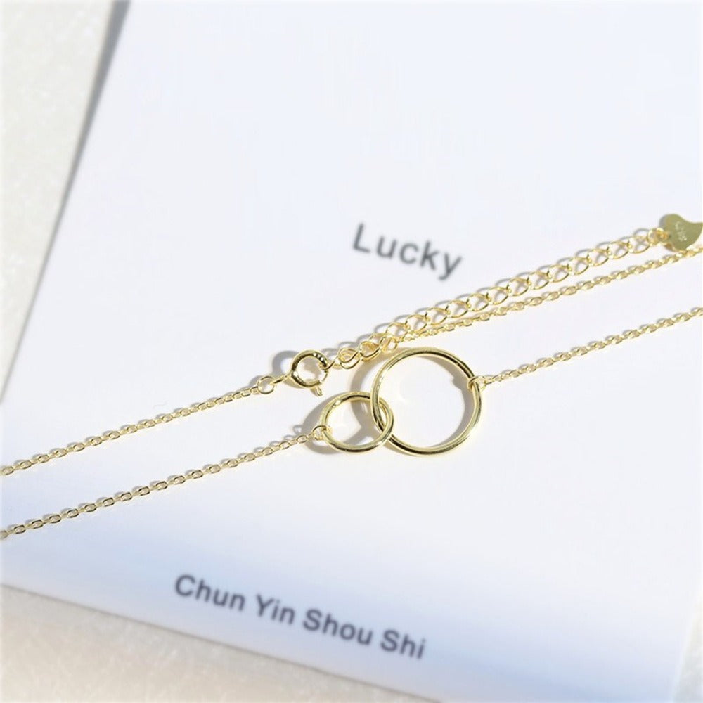 925 Sterling Silver Necklace Cross Chain Double Ring Circle 18K