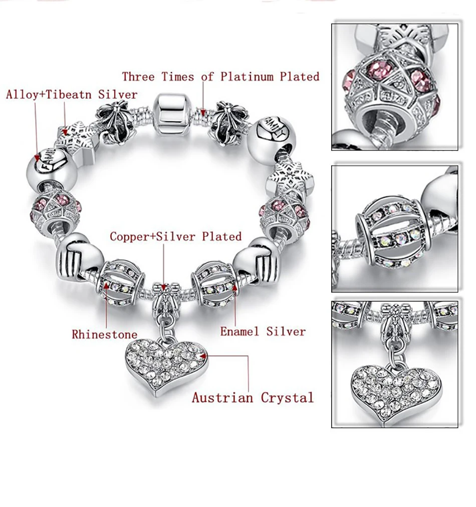 Name: Luxury Brand Women Bracelet Silver Crystal Charm Bracelet for Women