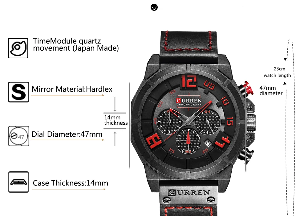 Multifunctional watch. All the pointers are working. This watch has a chronograph function.