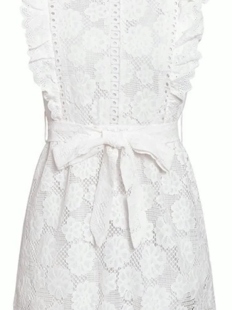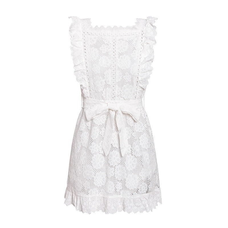 EMBROIDERED LACE WOOD EAR HEM DRESS