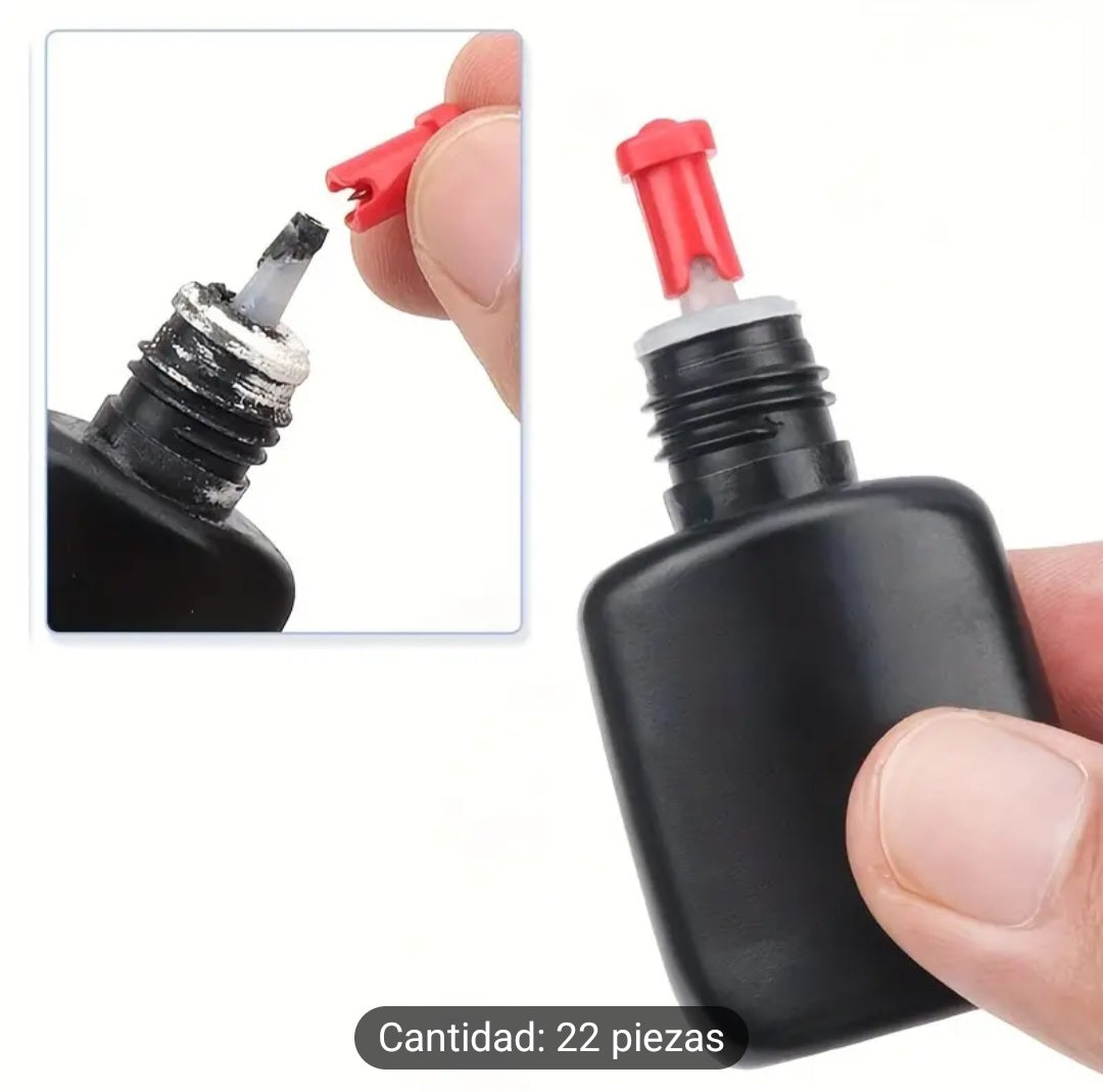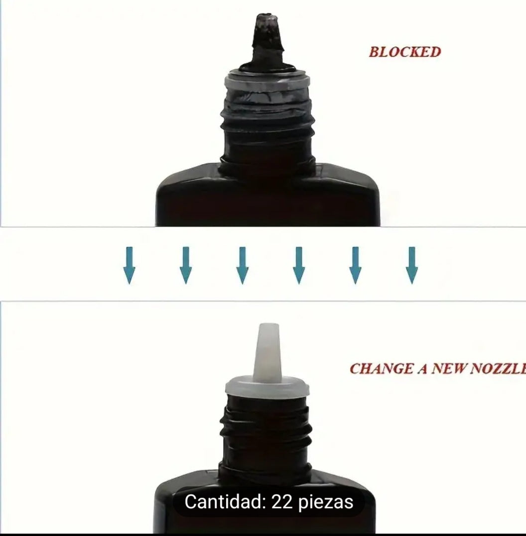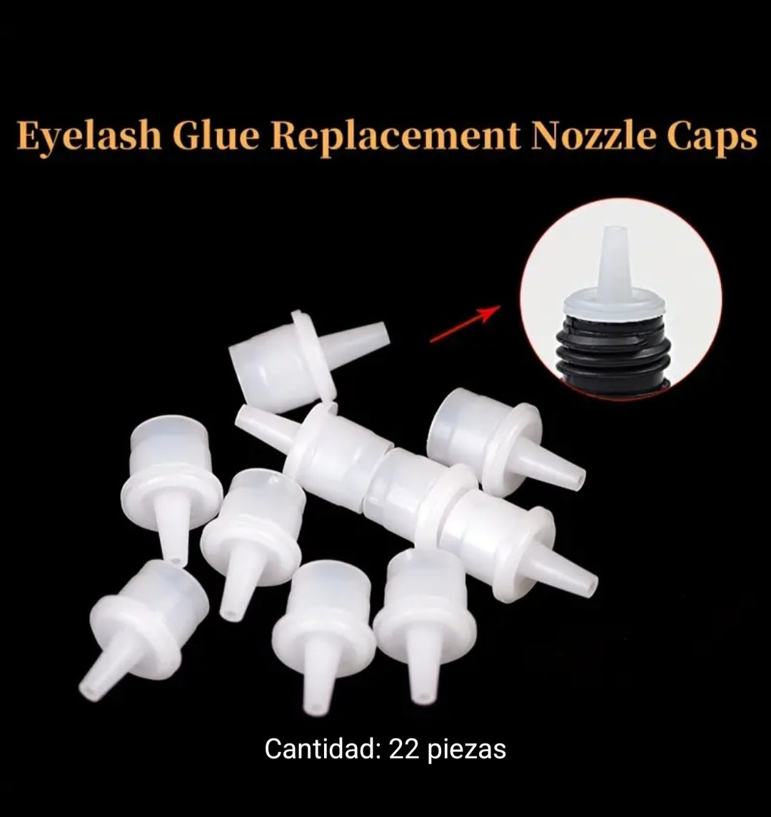 Juego de 22 piezas de puntas de aplicación de pegamento para pestañas y tapones de reemplazo de botellas con pines de prevención de bloqueos