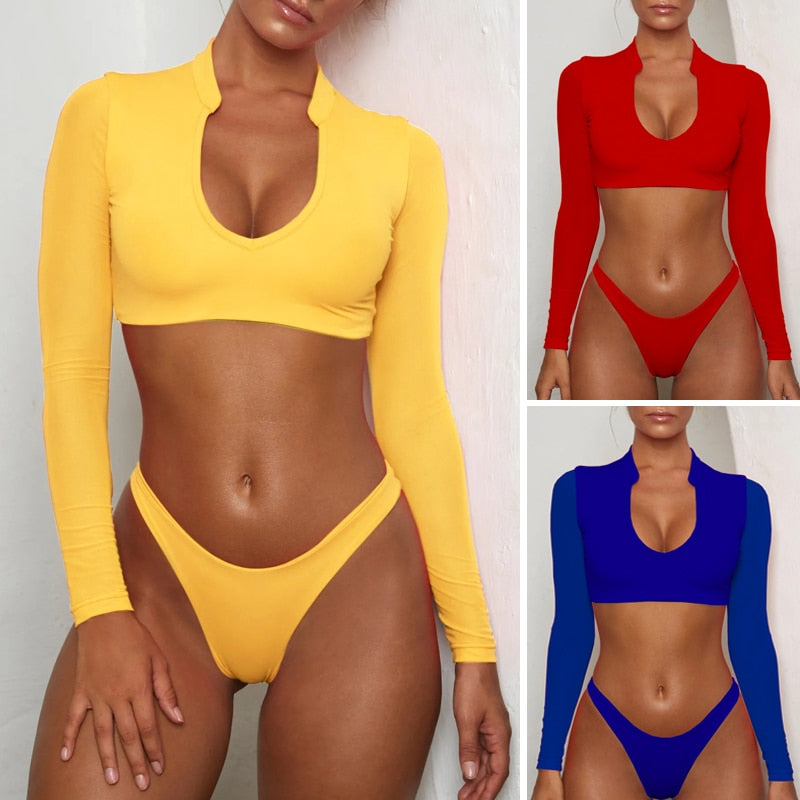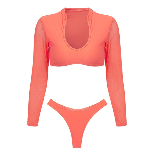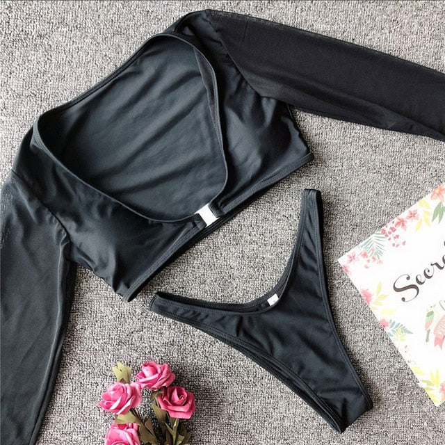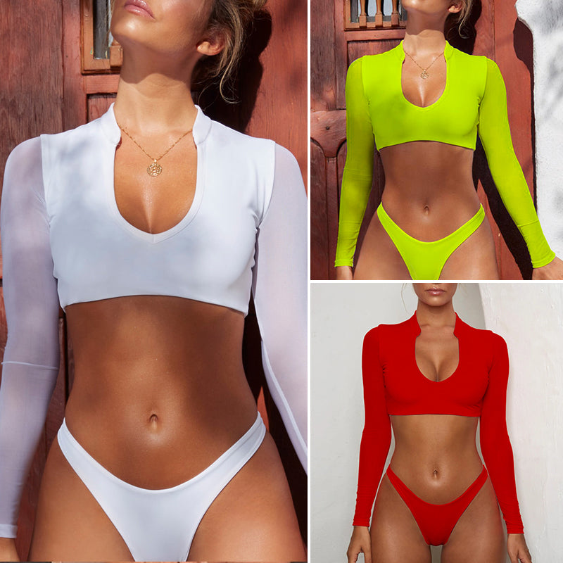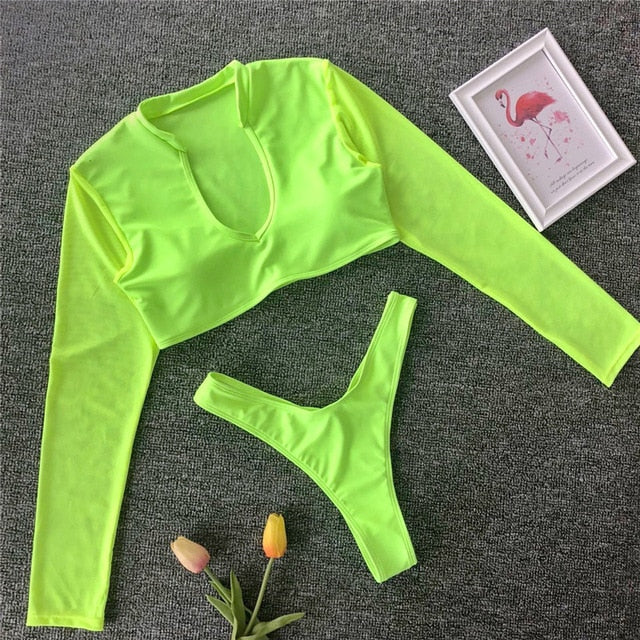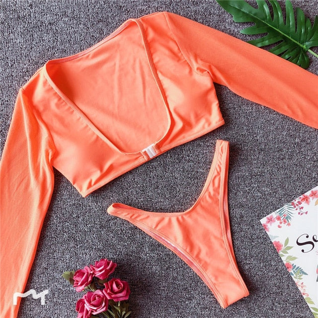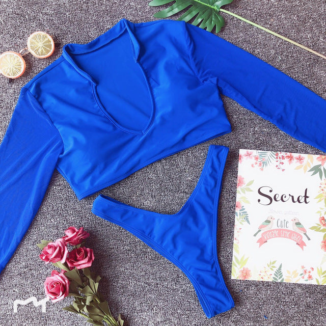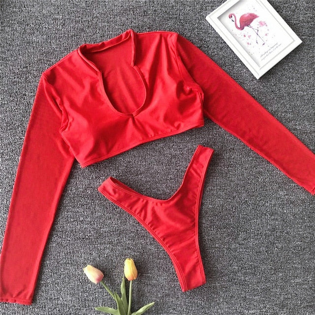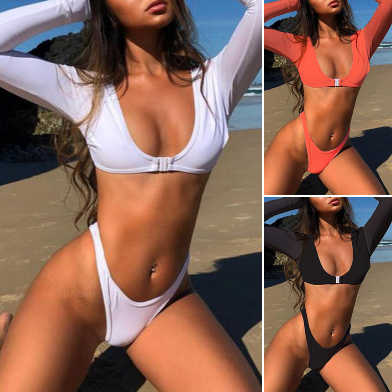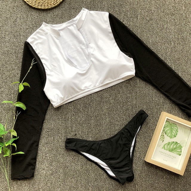 Long Sleeve Brazilian Bikini High Cut White Swimsuit