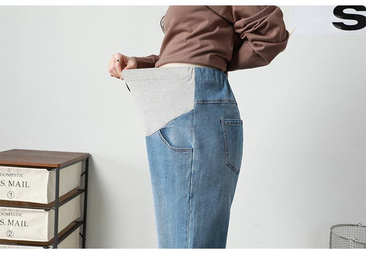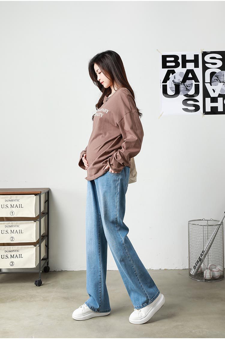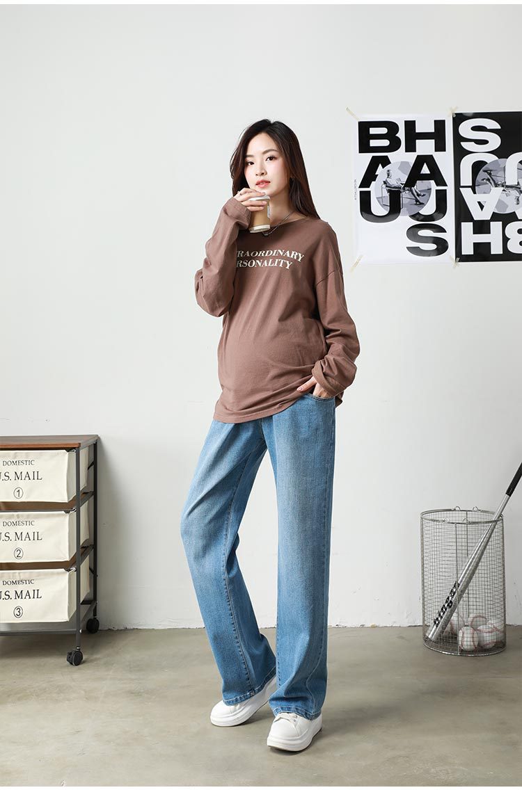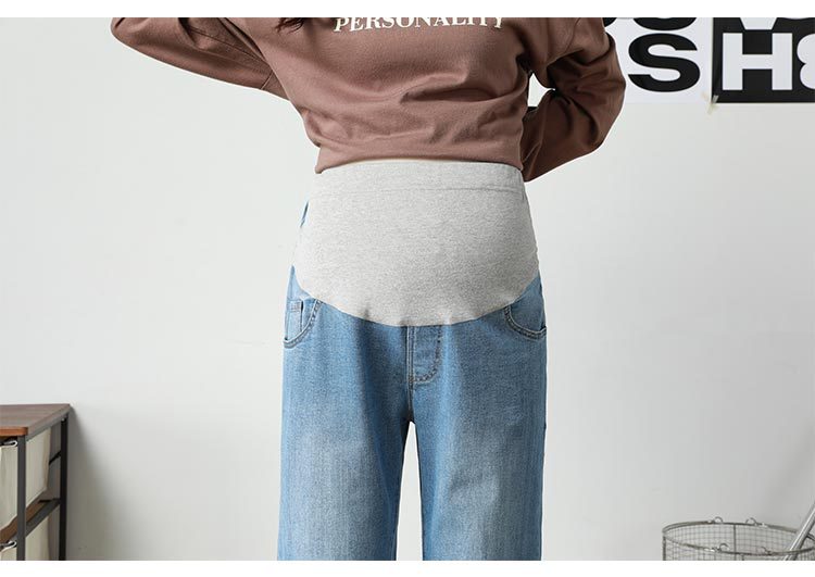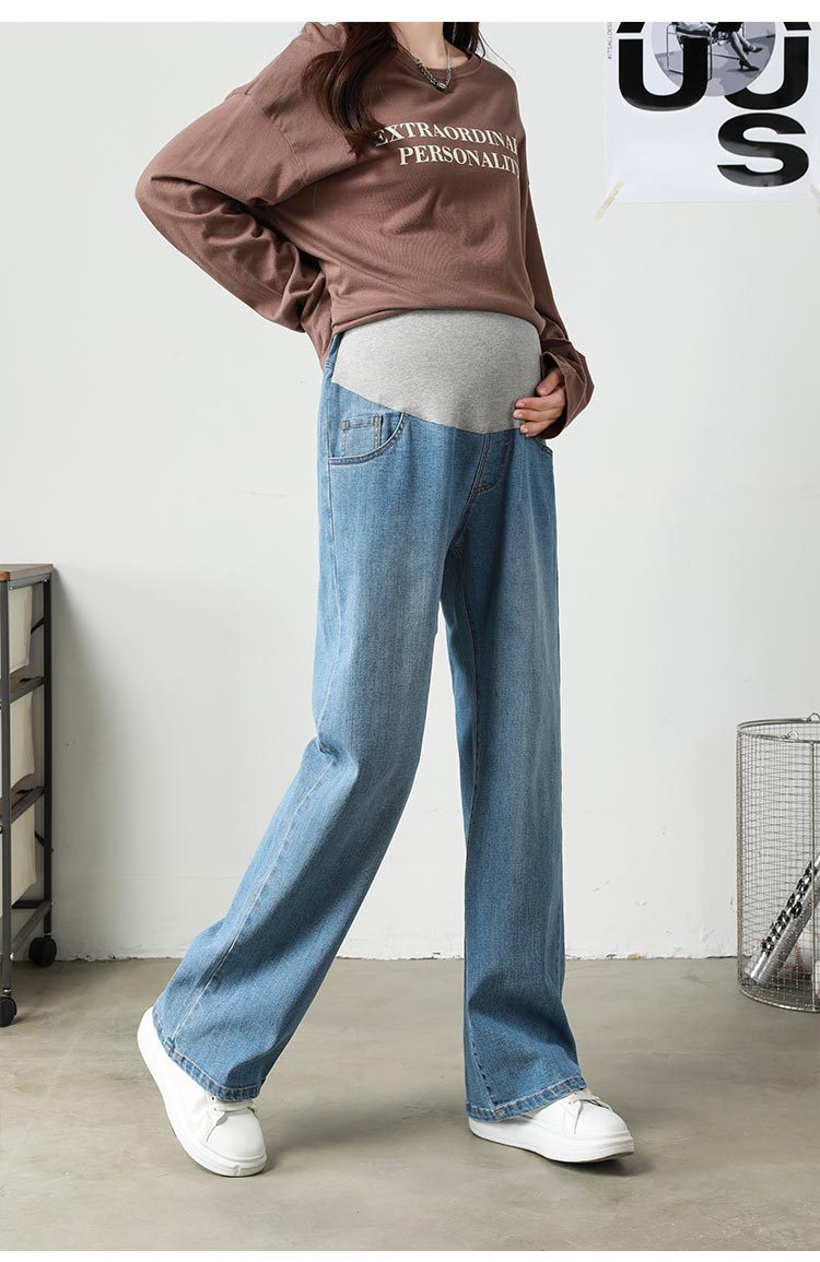 Pregnant women's denim wide leg floor mop soft underbelly pants plus size