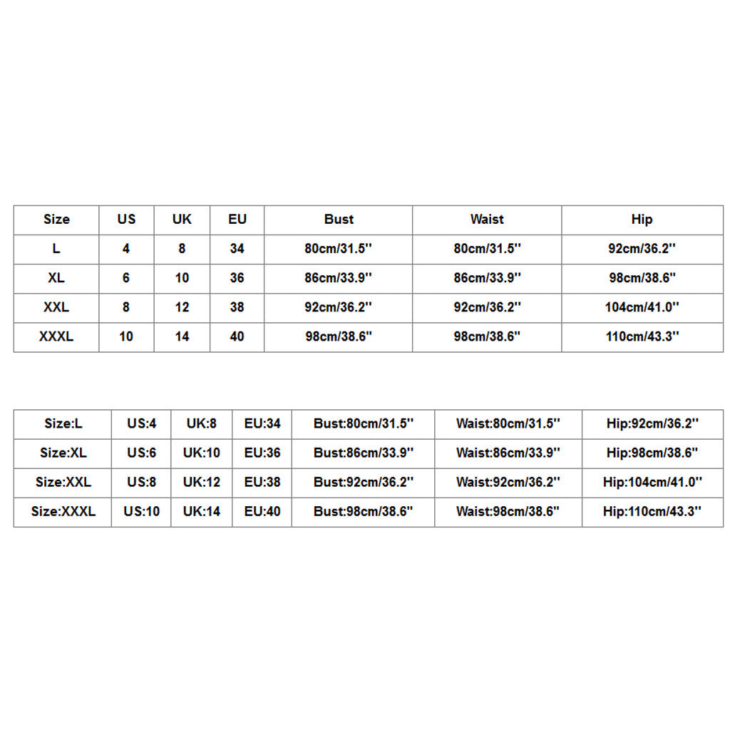 | Size | US | UK | EU | Bust | Waist | Hip |