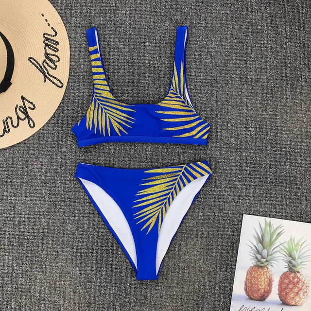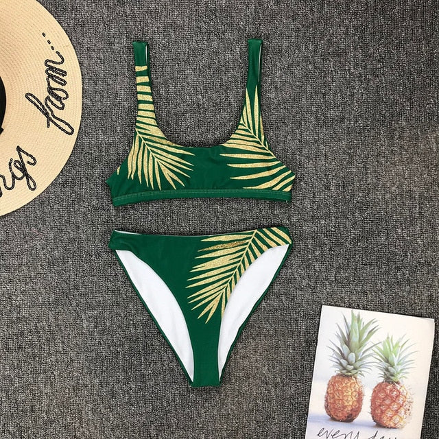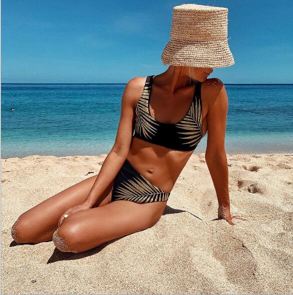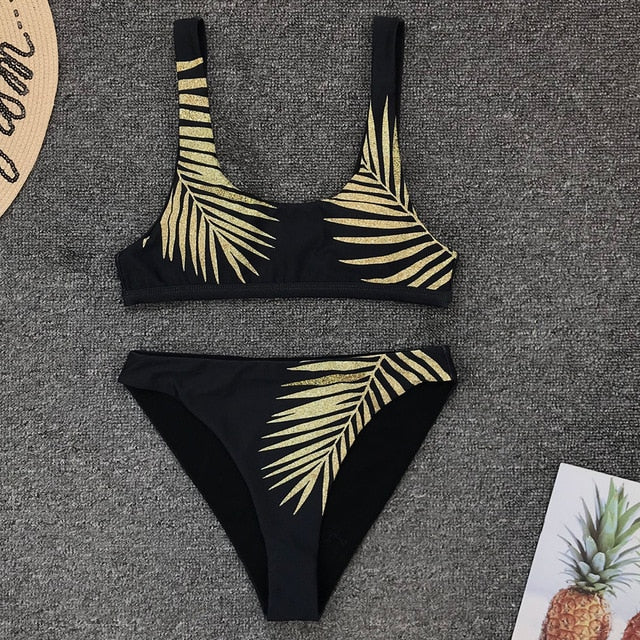 Sexy Print Bikinis Black Biquini Leaf Print Bikini Brazilian Micro Swimwear Women