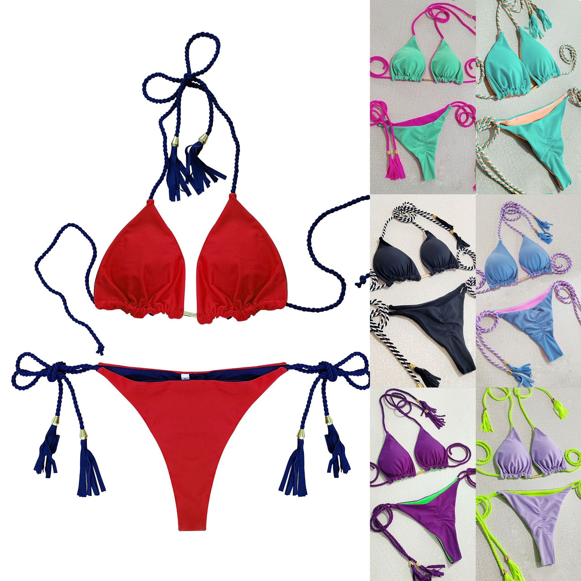 Swimsuit women's bikini split sexy triangle double-sided contrasting beach