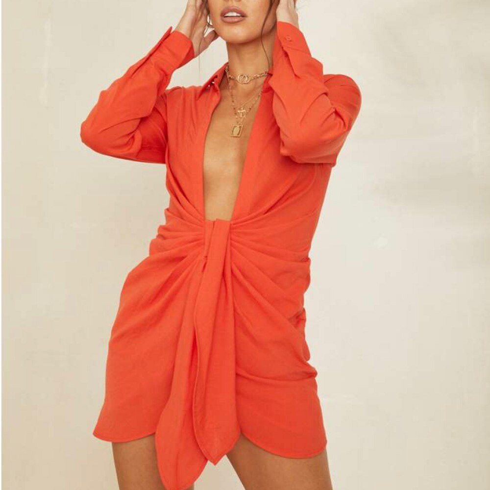 Women Sexy Deep V Neck Shirt Dress Summer Beach Boho